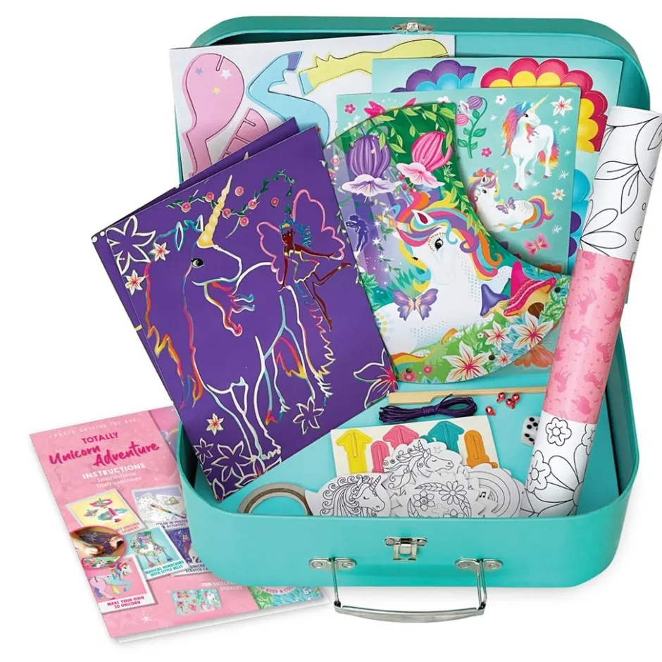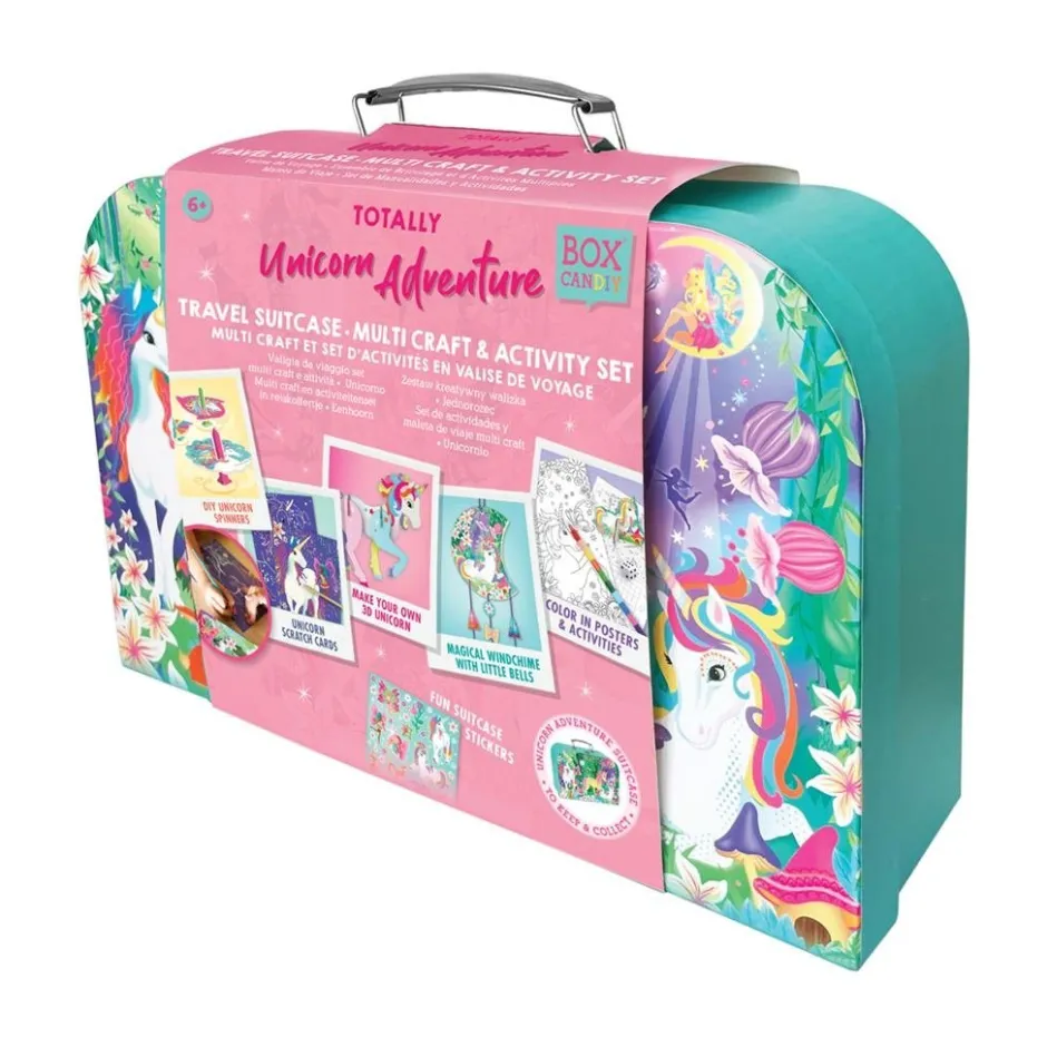 Een koffer vol met knutselspullen. Met deze set kun je jouw eigen unicorn gaan maken. Handig om mee te nemen op vakantie of als je uit logeren gaat. Geschikt voor kinderen vanaf 6 jaar.