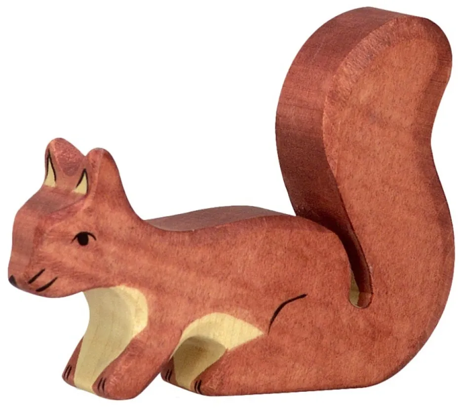 Dit eekhoorntje van Holztiger heeft zijn staart omhoog en zit op zijn vier pootjes. Afmeting (lxbxh): 7.5×1.9×6 cm