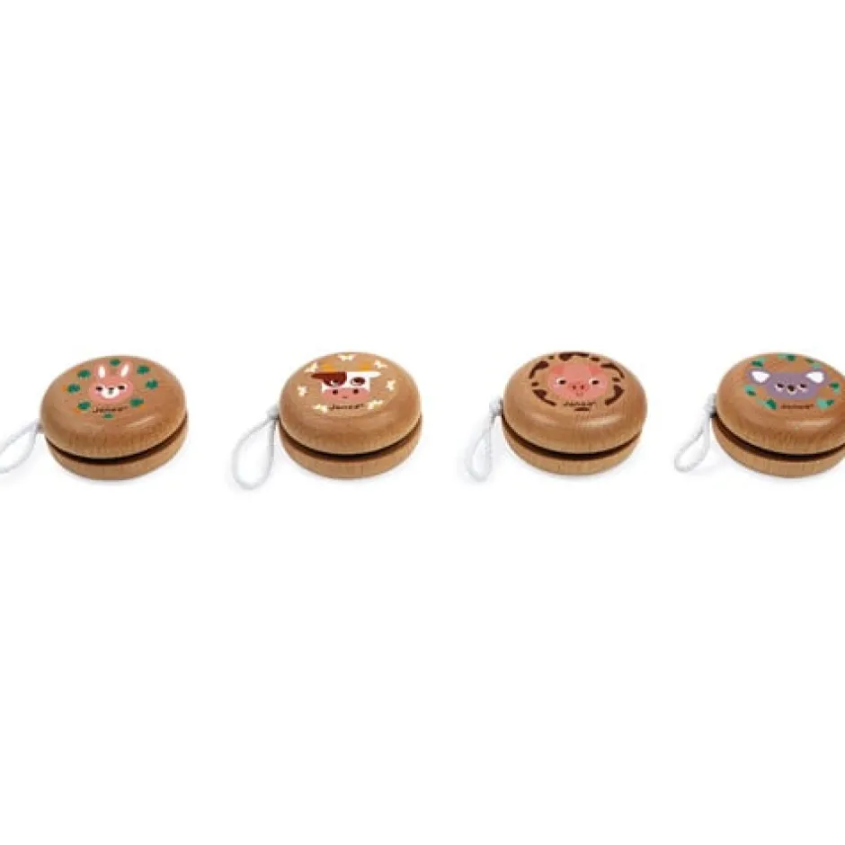 De klassieke jojo in een mooie kleurstelling. De houten jojo van Janod heeft een afbeelding van een haas, varken , koe of een koala. De jojo wordt willekeurig per stuk geleverd. We proberen rekening te houden met een eventuele voorkeur die je kunt opgeven