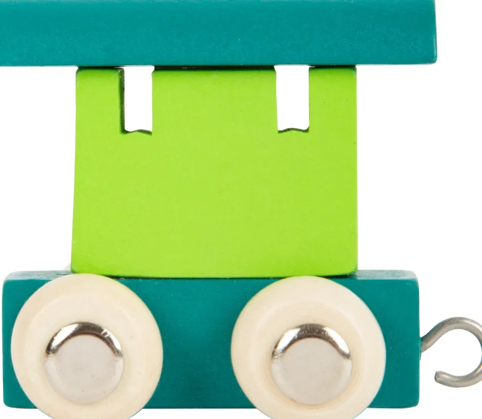 Specificaties voor: Lettertrein Blauw en Groen Hout