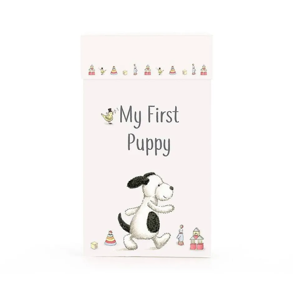 My first puppy van Jellycat is een heel mooi kraamcadeautje. Deze lieve knuffelhond wordt geleverd in een mooie geschenkverpakking. De puppy is knuffelzacht en heeft opvallend zwarte oren. Hoogte: 19 cm.
