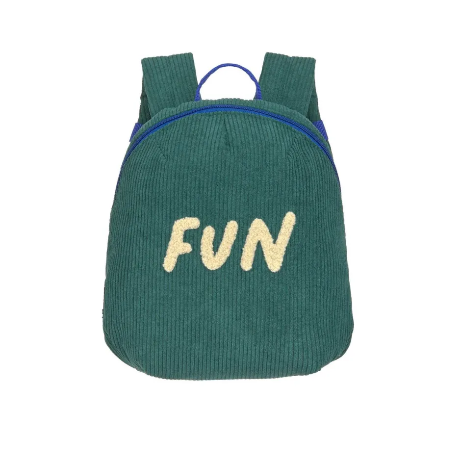 De groene kleuterrugzak van corduroy met 3D-borduursel is ideaal voor de kleuterschool, de crèche of op reis. De PFC-vrije kinderrugzak heeft een inhoud van 3,5 liter en is geschikt voor kinderen vanaf 2 jaar.